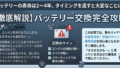 ※ 本記事は一般的な乗用車を対象にした情報です。正確な交換時期はお乗りの車の取扱説明書・メンテナンスノートをご確認ください。